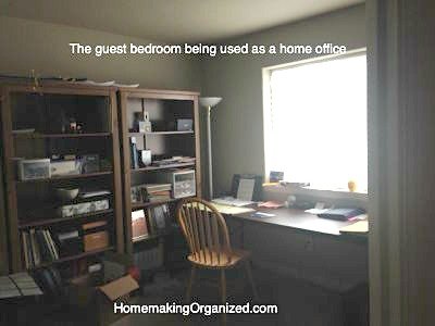 Bedroom number two is my husband's former office. He says “ours” but I don't go in there except to file and tell him it needs cleaning so I call it his.