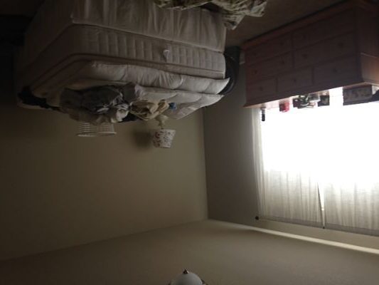 There is not much around the room to be cluttery (is that a word?). We have two dressers, a standing valet for my husband's suits, and my fan.