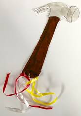 1. Use Kwik Stix to paint a coloring page for your bookmark. We chose a handy hammer for Dad.